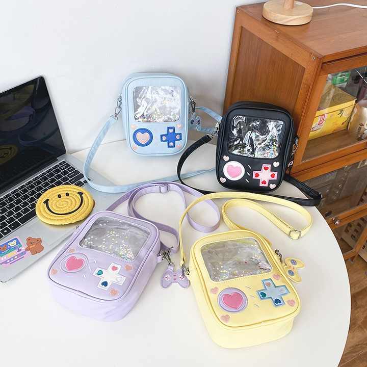 Sac à main de créateur créatif, couleur unie, Transparent, imperméable, réglable sur le côté, Console de jeu de dessin animé, boucle antivol, mignon