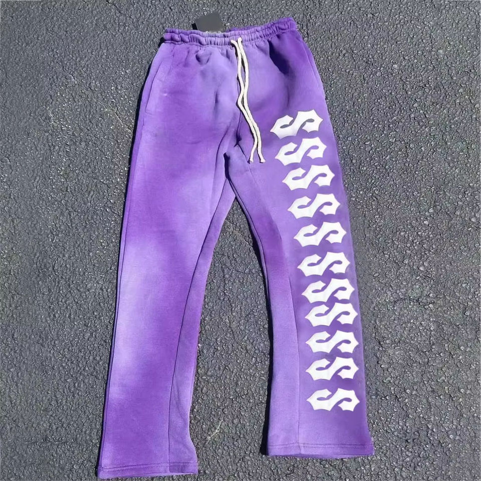 Pantalons de survêtement personnalisés lavés à l'acide pantalons de survêtement pour hommes pantalons de survêtement évasés à rayures incurvées et à imprimé bouffant
