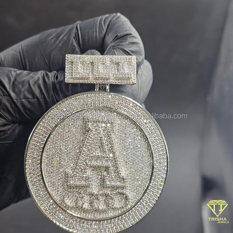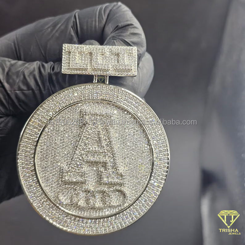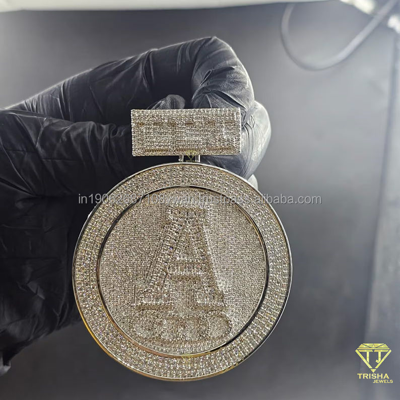 Pendentif personnalisé de créateur en forme de lettre « A » avec diamants ronds VVS cultivés en laboratoire dans de l'argent sterling 925 pour hommes