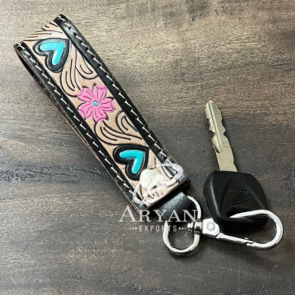 Porte-clés vintage en cuir véritable fait main avec logo personnalisé, style western, porte-clés unique et élégant pour femmes