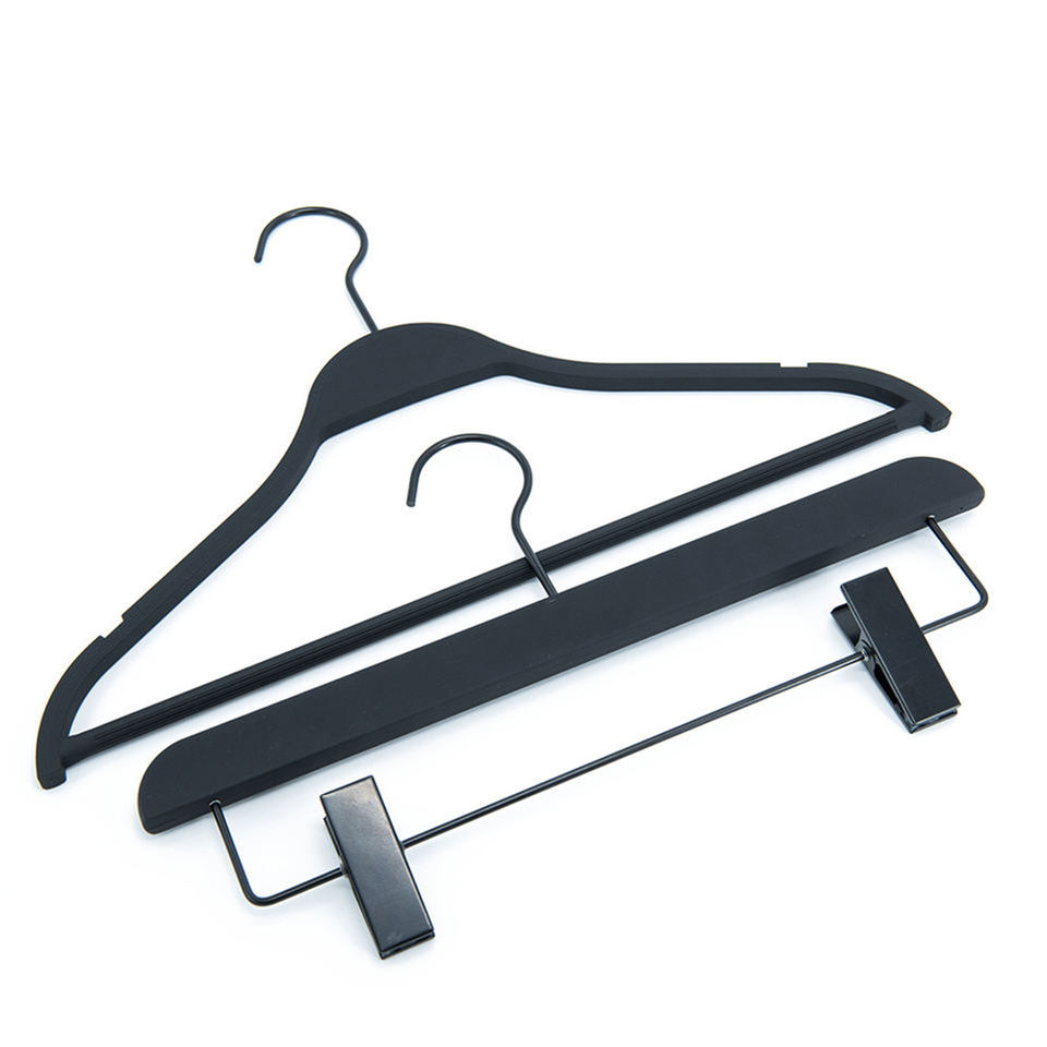 Cintre en plastique avec revêtement en caoutchouc pour vêtements noirs, pantalons et jupes, cintres en boutique pour magasins de vêtements.