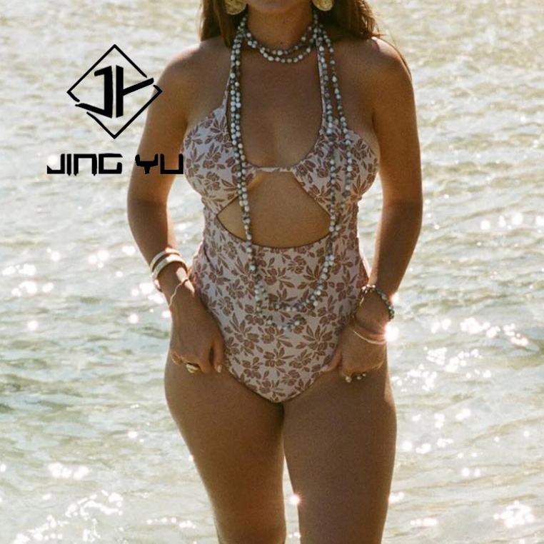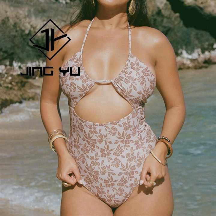 Maillot de bain une pièce personnalisé avec logo de designer, imprimé plage, bretelles creuses, OEM, nylon recyclé