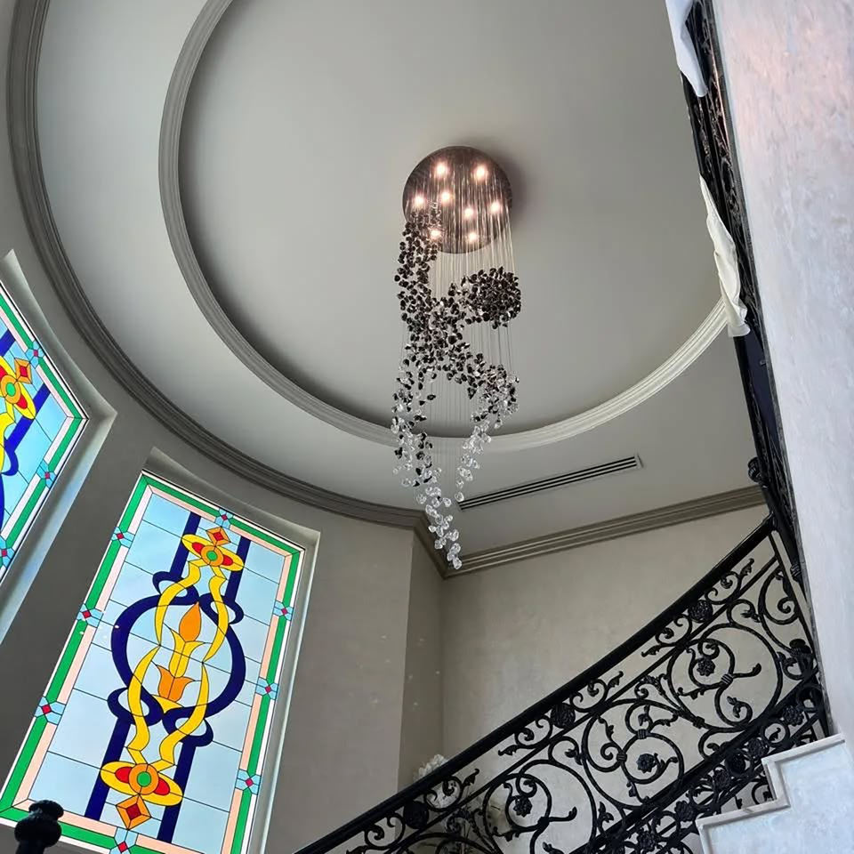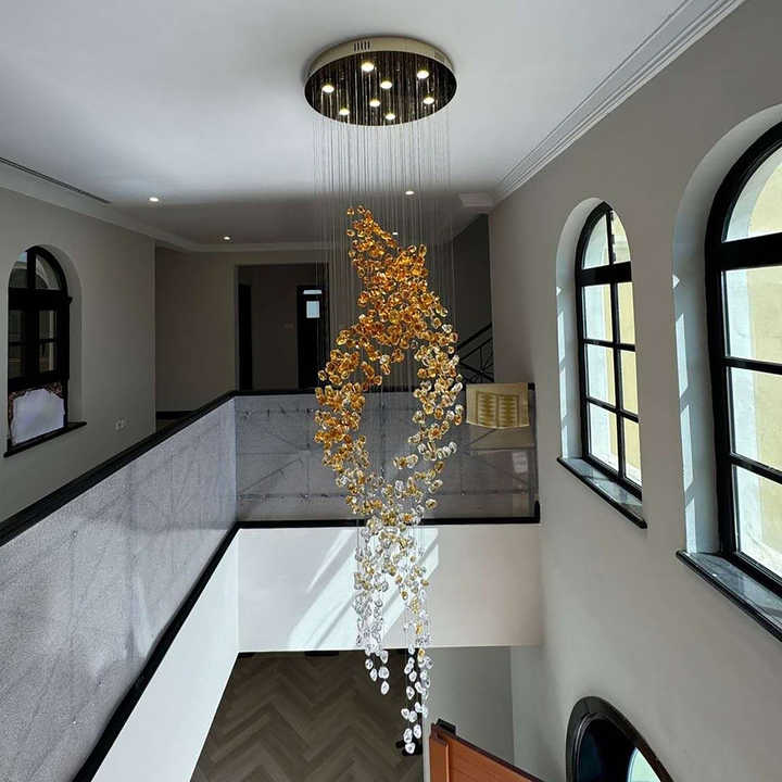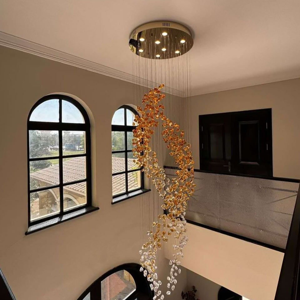 Lustre long de décoration en spirale à double hélice de designer pour le salon Lustre d'escalier d'hôtel à haut plafond