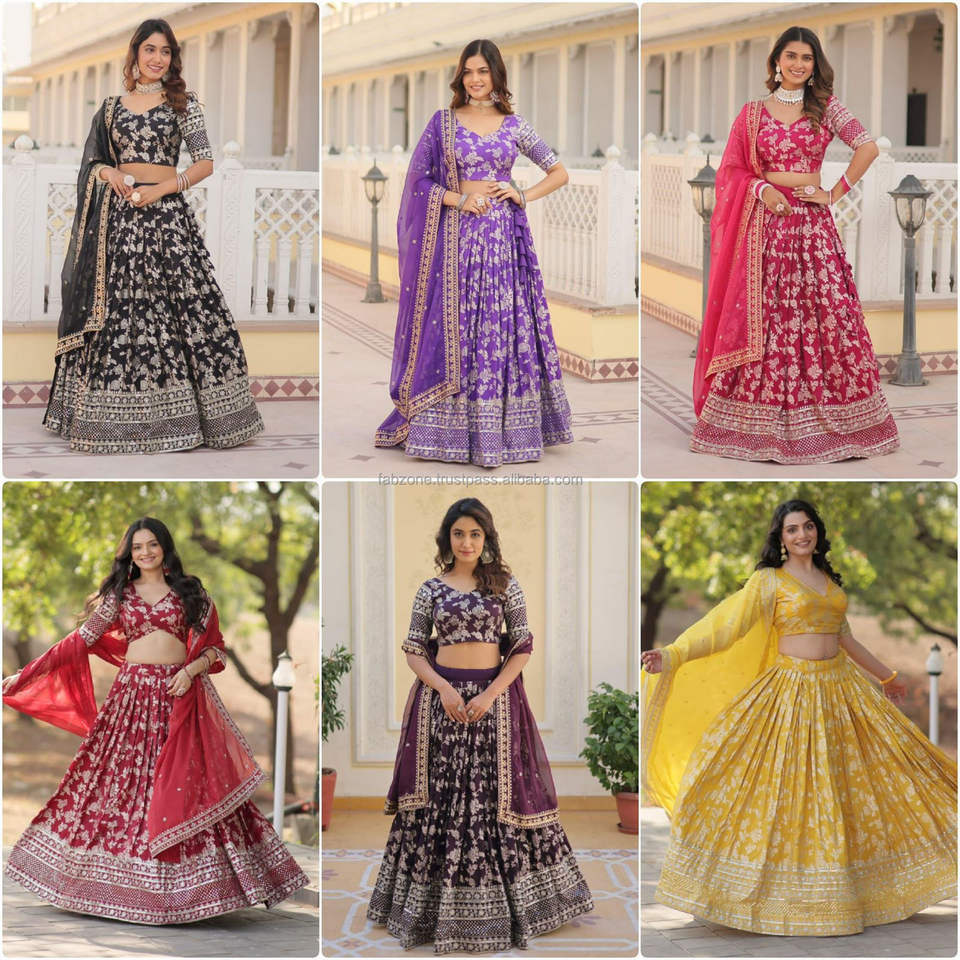 Ensemble Lehenga Choli & Dupatta Tissu Jacquard Pure Viscose Teintable Designer