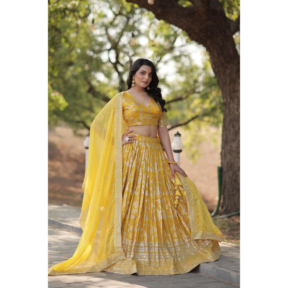 Ensemble Lehenga Choli & Dupatta Tissu Jacquard Pure Viscose Teintable Designer