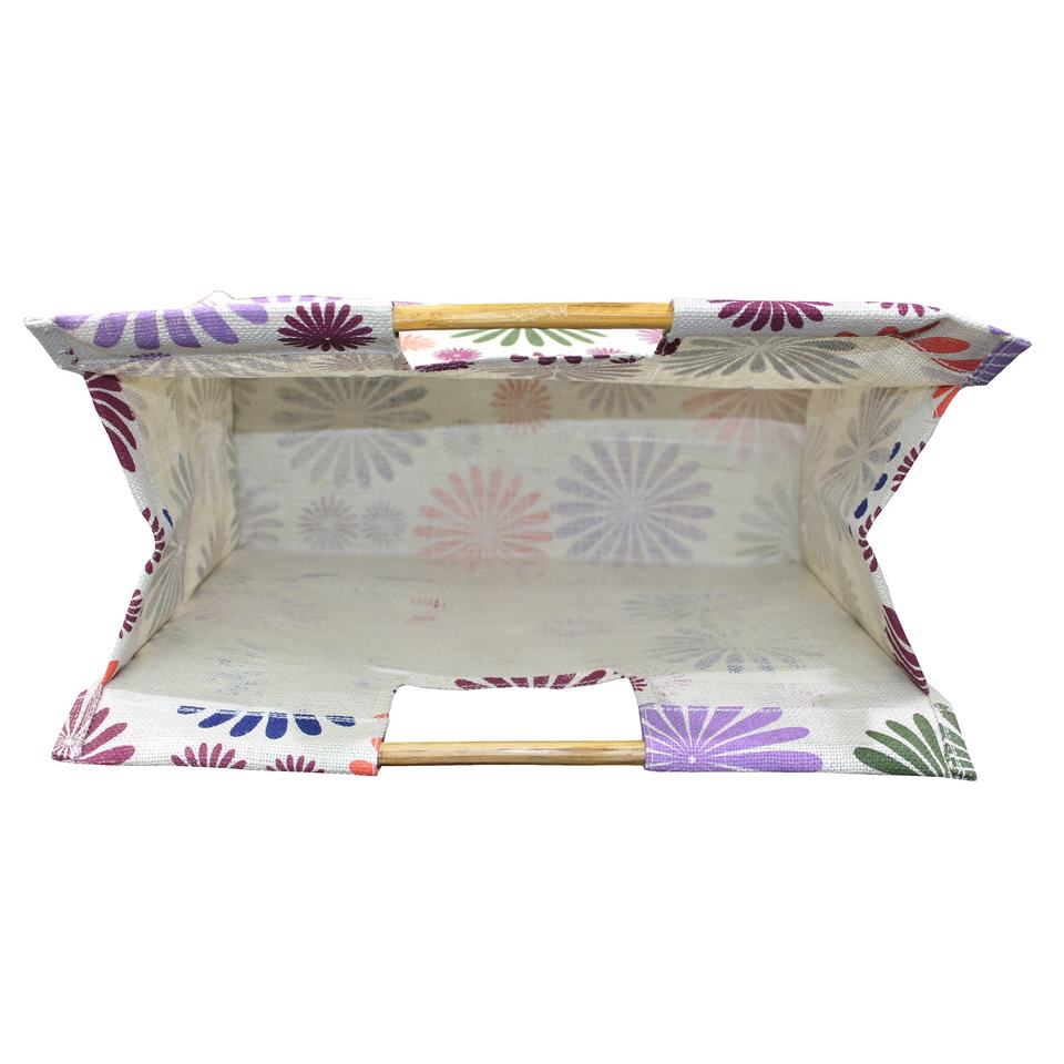Sac en toile de jute écologique de créateur Tote en toile de jute avec imprimé floral Poignée en bambou Sac à provisions en jute laminé PP