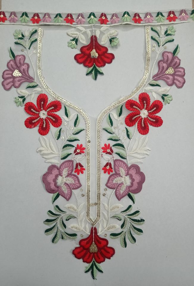 Écusson à col brodé de créateur avec touche de paillettes sur tissu en filet pour vêtements ethniques-Kurtis Blouses Sarees Gowns