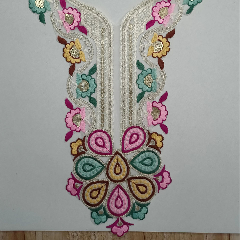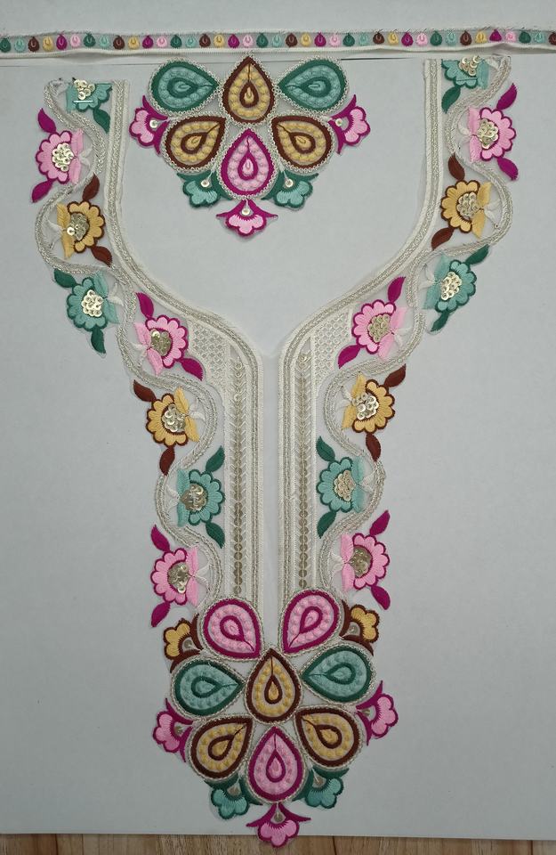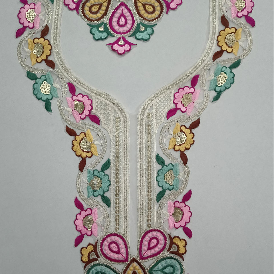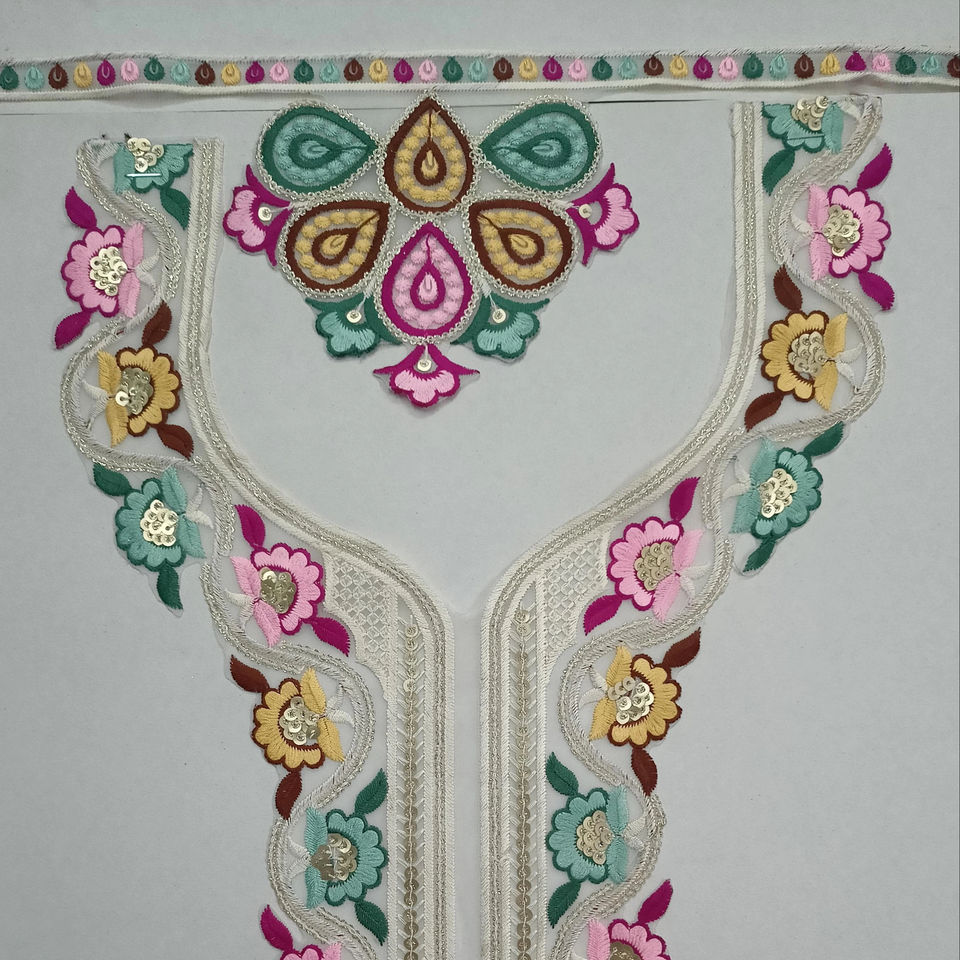 Col de cou brodé en tissu filet avec paillettes pour robe Kurti Saree de style ethnique et textiles de maison