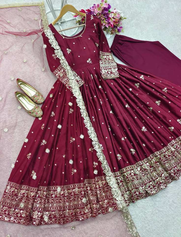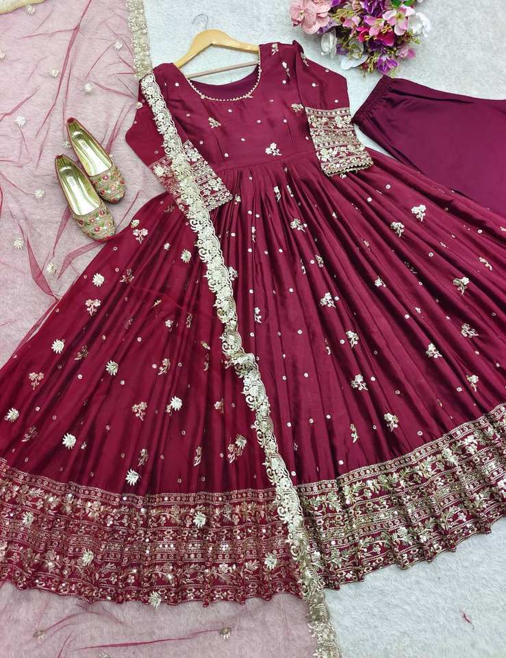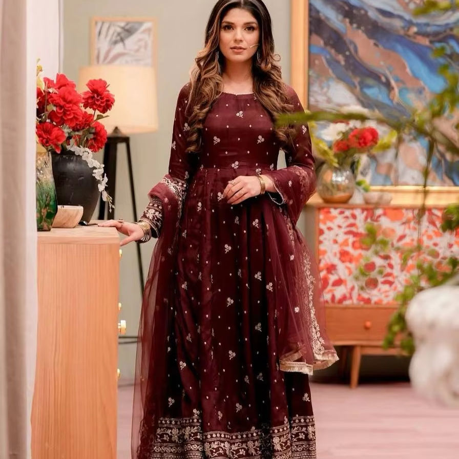 Robe de soirée brodée de créateur avec Dupatta, robe Anarkali à manches longues, robe de mariée pakistano-indienne-cousue