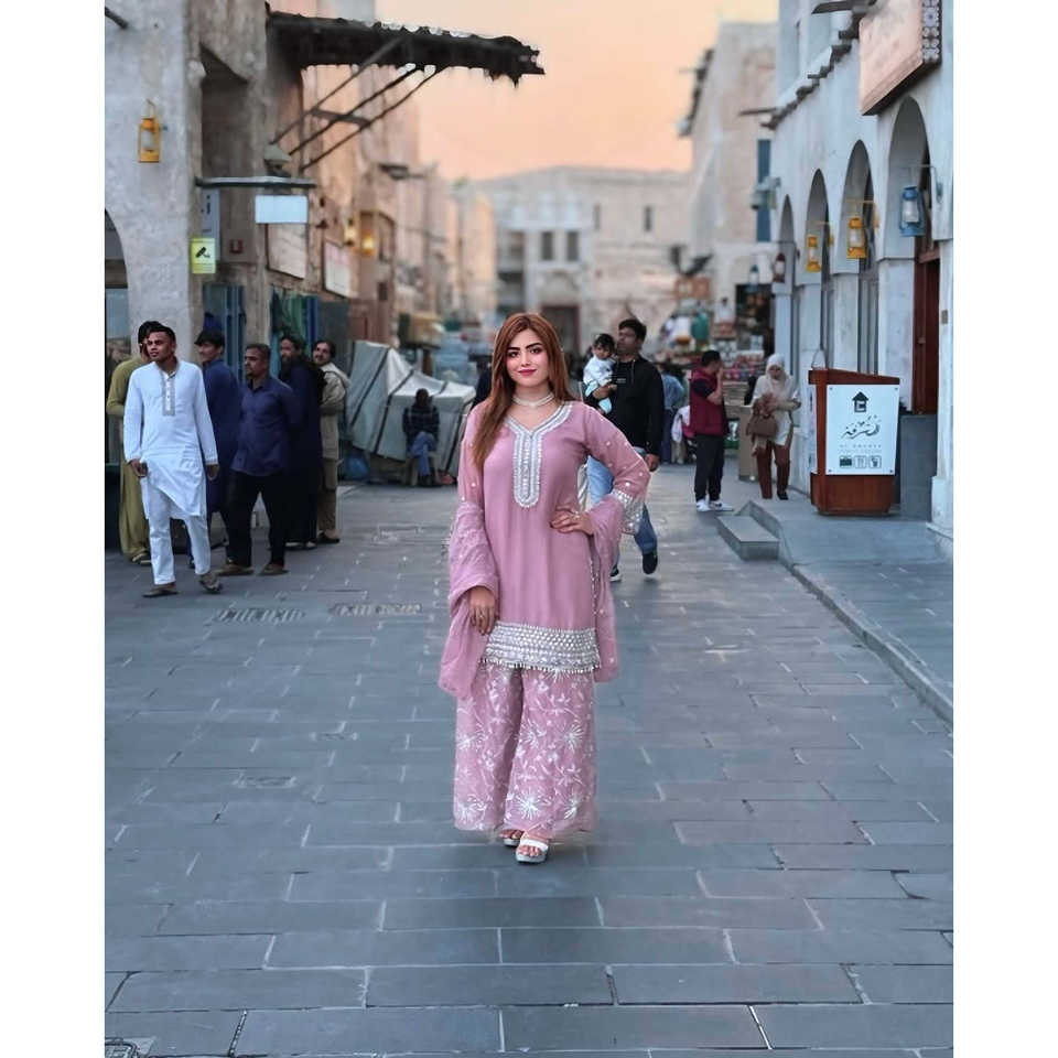 Top brodé de créateur-Ensemble Plazo et Dupatta pour robes de bal avec travail de séquence