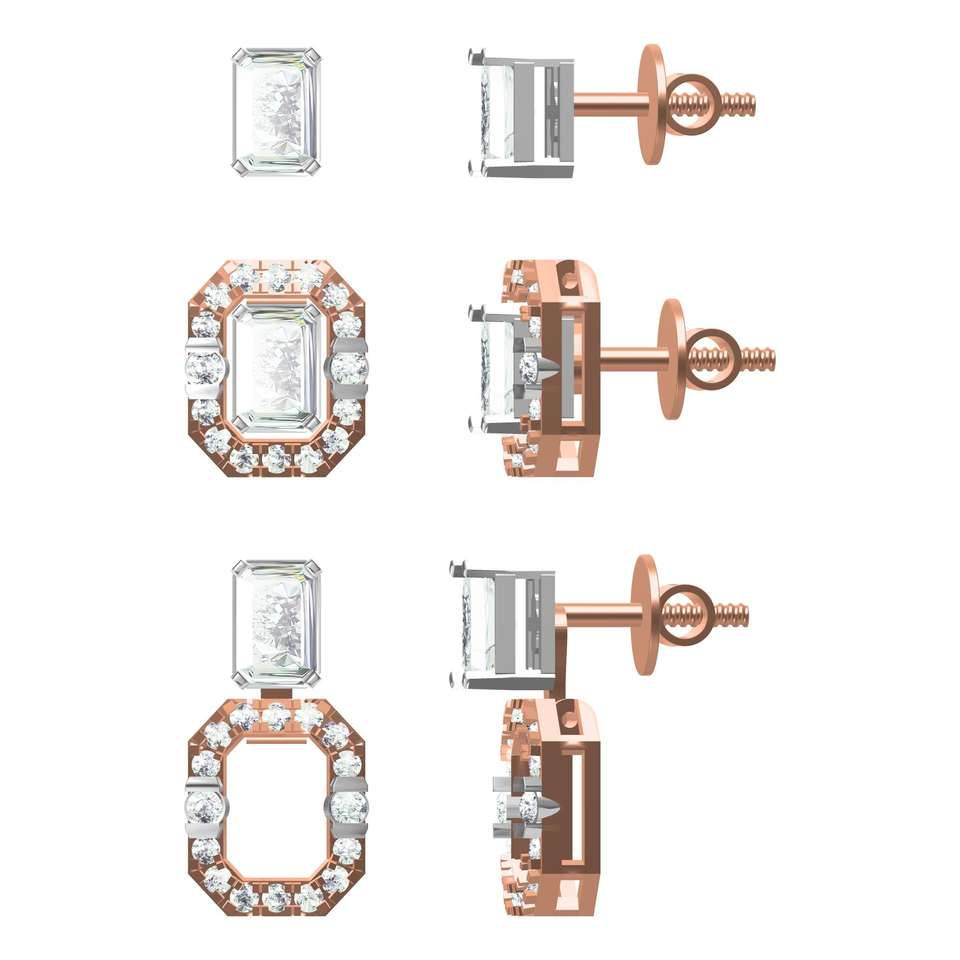 Designer Emerald Lab Diamond Studs 2-in-1 10K/14K/18K Gold Rhodium Plated IGI Certified Multi-Color Options Stylish Jewelry