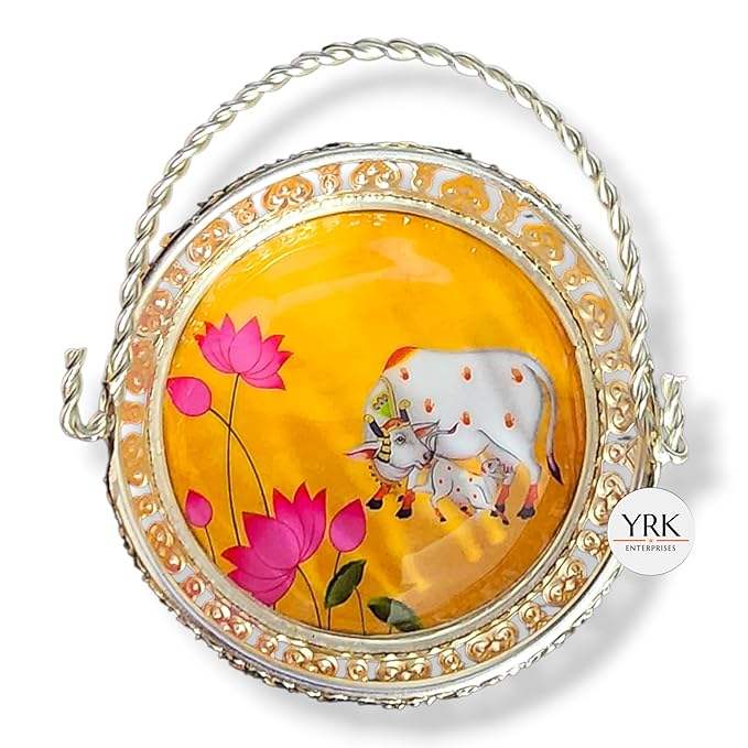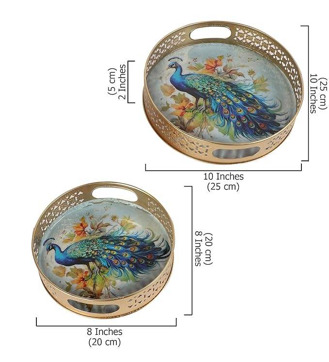 Plateau en métal avec impression émail de style Pichwai et motif floral, pot et porte-bougie assortis