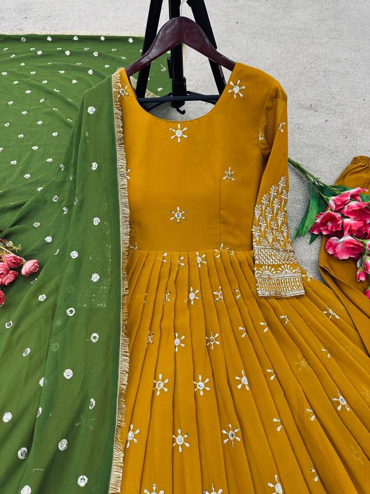 Ensemble de Robe Ethnique en Georgette de Designer avec Bas Brodé et Dupatta Elégant Broderie Lourde pour Mariage et Fête Vente en Gros