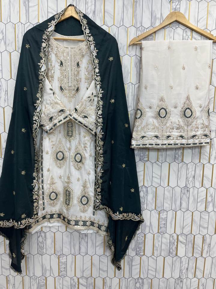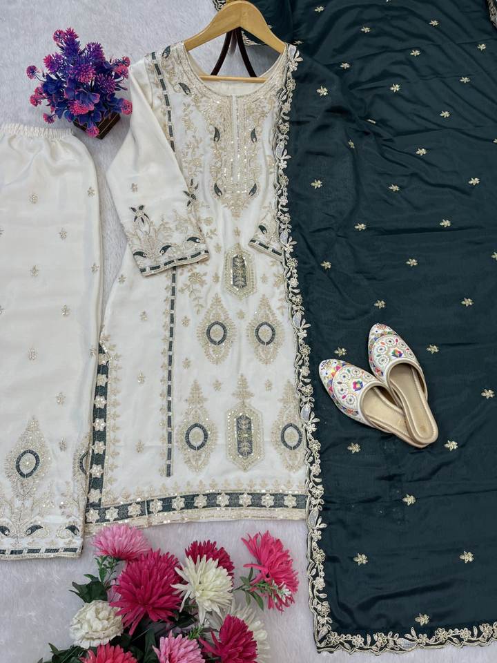 Ensemble de costume ethnique de créateur pour les fêtes avec des travaux de miroir complexes et des bordures ornées