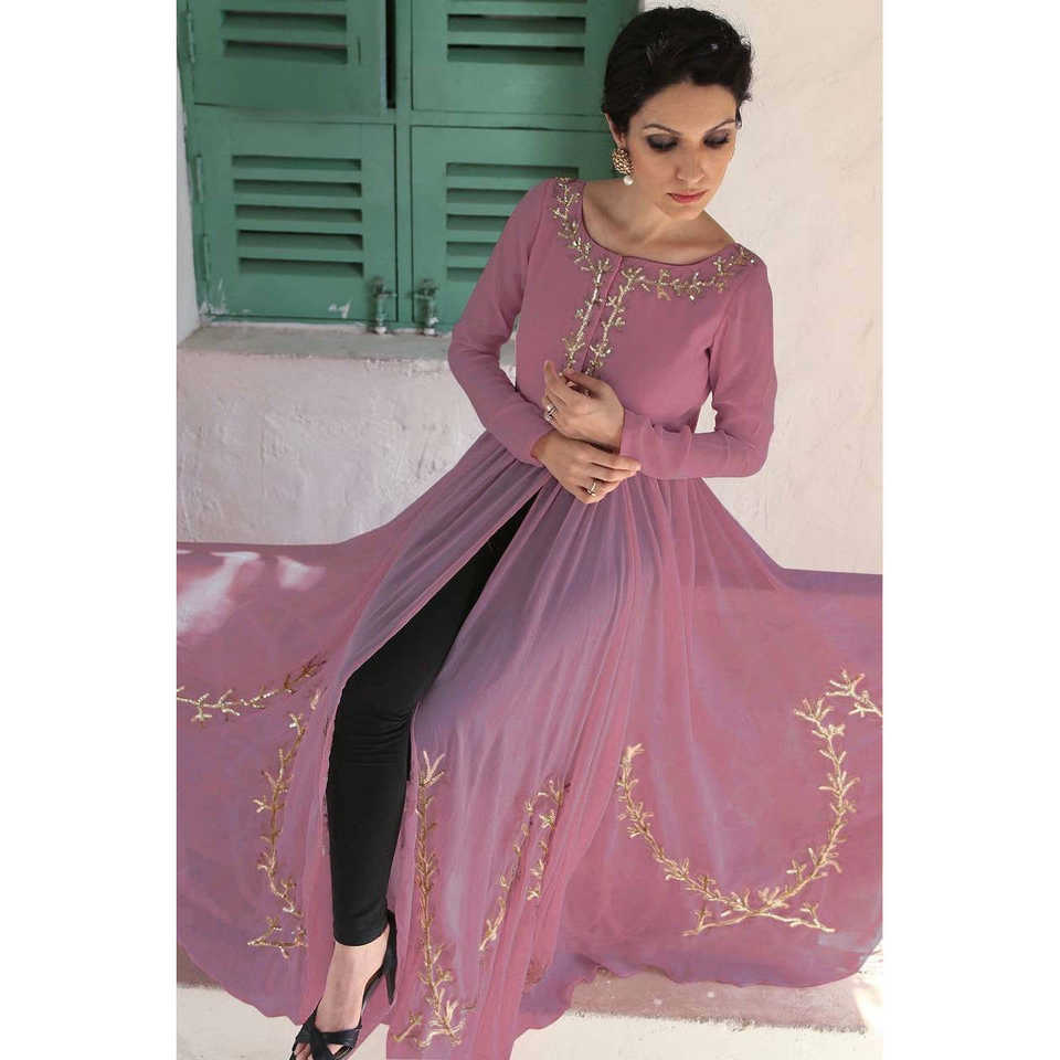 Robe de soirée de créateur pour les fêtes avec séquence et travail Zari