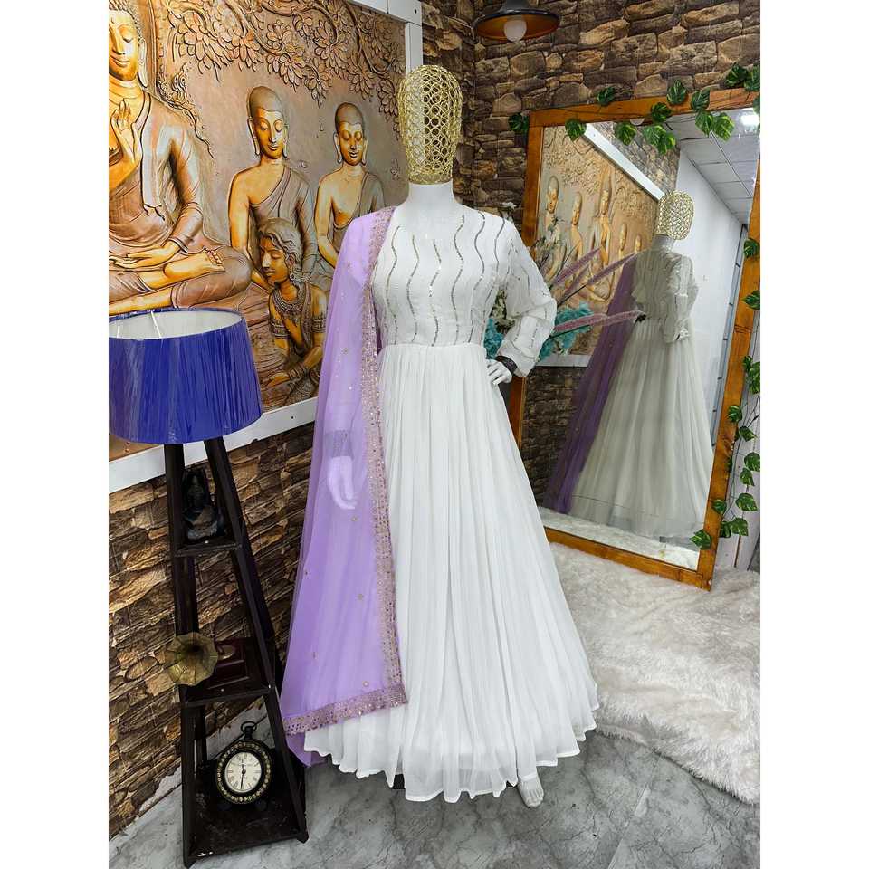 Designer Evening Dresses Stylish Anarkali Gown with Beautiful Dupatta and Peent for Party Wear