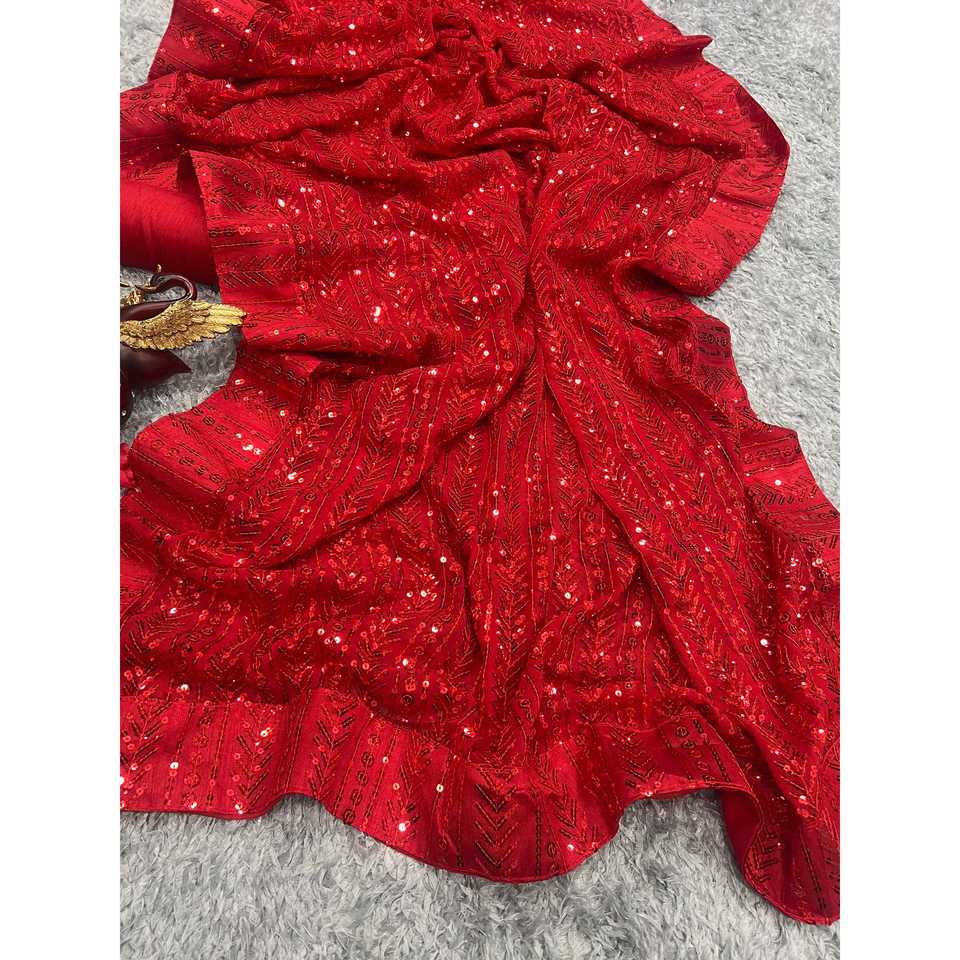 Sari de soirée de créateur avec de magnifiques broderies de sequins pour les fêtes
