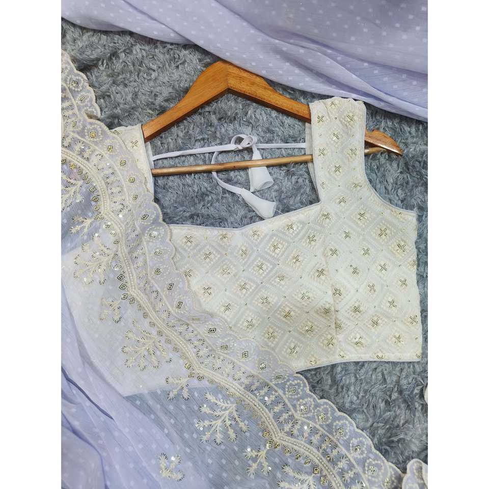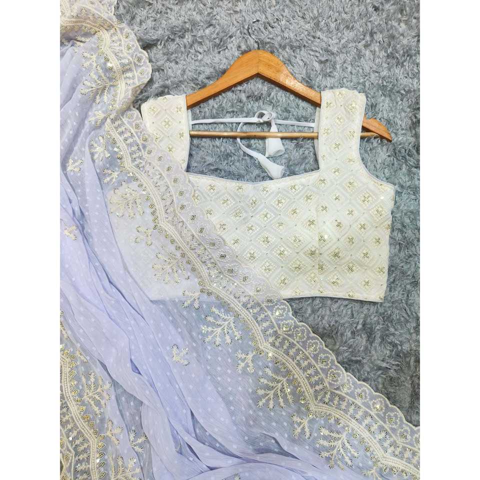 Sari de soirée de créateur avec de magnifiques paillettes et broderies de fils