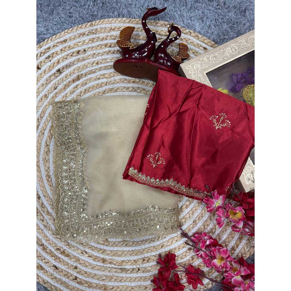 Designer Evening Saree with Sequence and Zari Embroidery for Party Wear