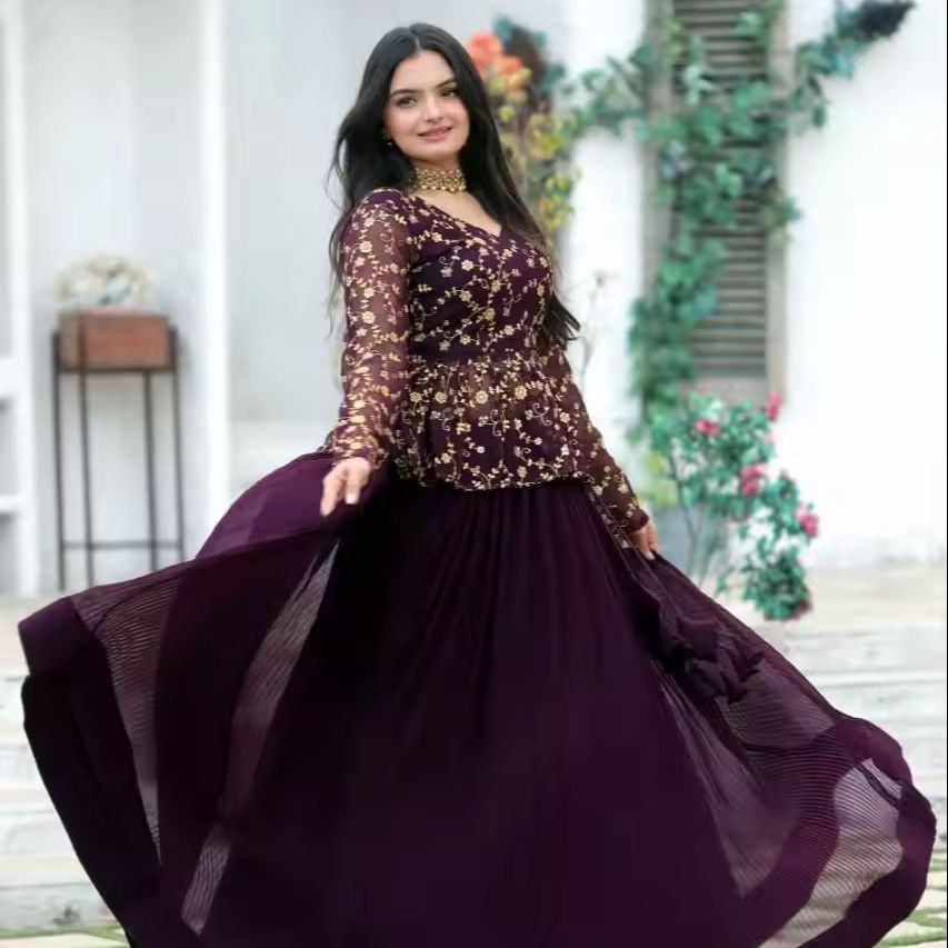 Blouse de travail à sequins brodés lourds fantaisie de créateur Crush Pleating Faux Blooming Style pakistanais Silky Lehenga Choli pour