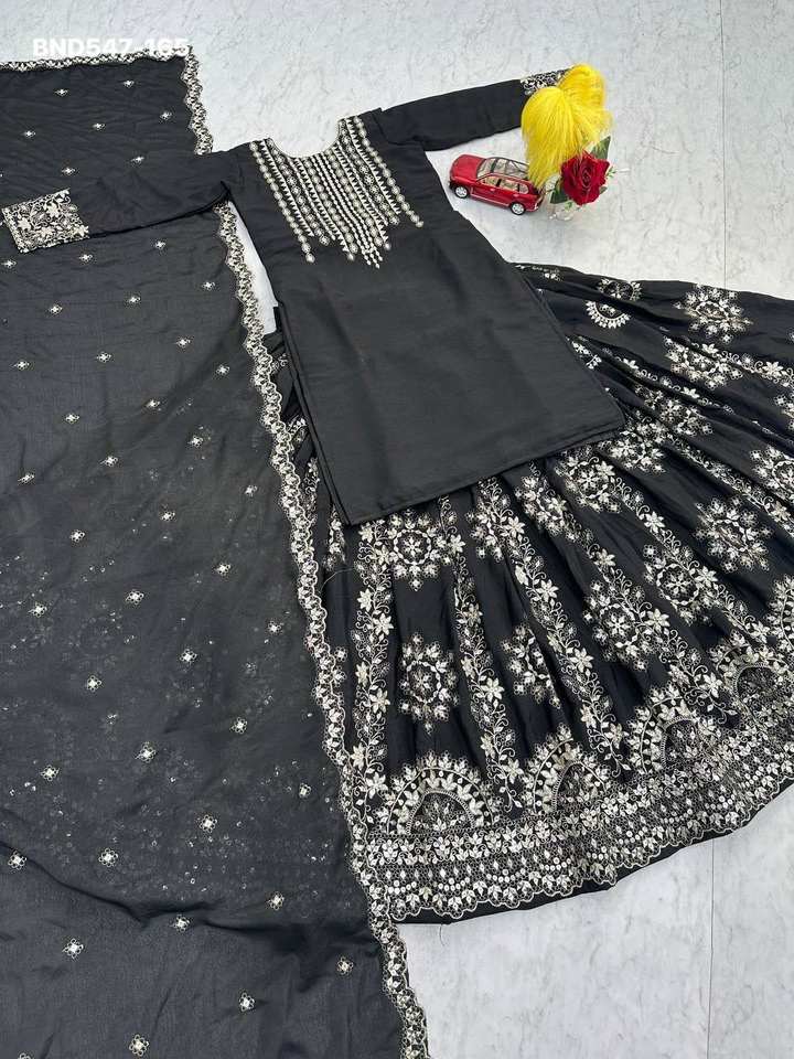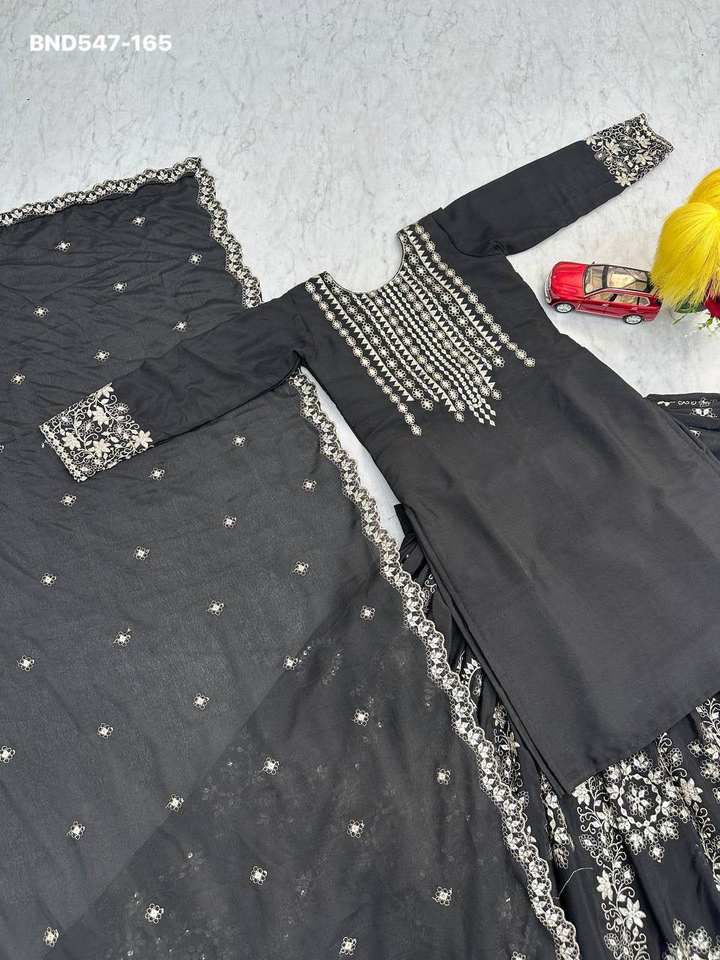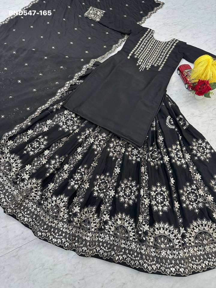 Nom du produit:Ensemble Lehenga, Top et Dupatta en chinon épais avec broderie et sequins.