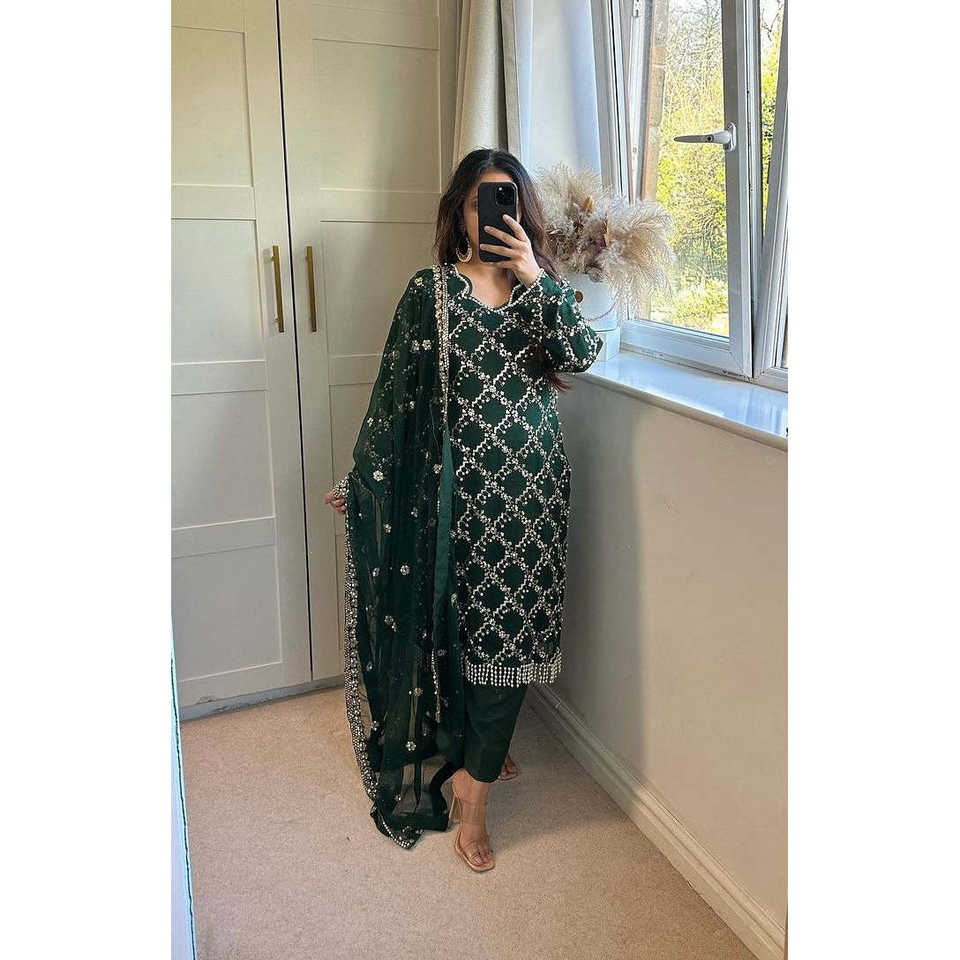 Ensemble haut long, pantalon et dupatta de style fantaisie - Vêtements indiens et pakistanais