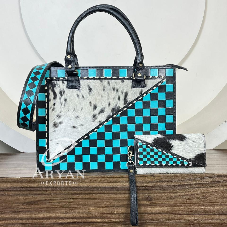 Sacs fourre-tout de luxe personnalisés en cuir de vachette à carreaux, grande capacité, avec portefeuille-bracelet, ensemble assorti pour femme