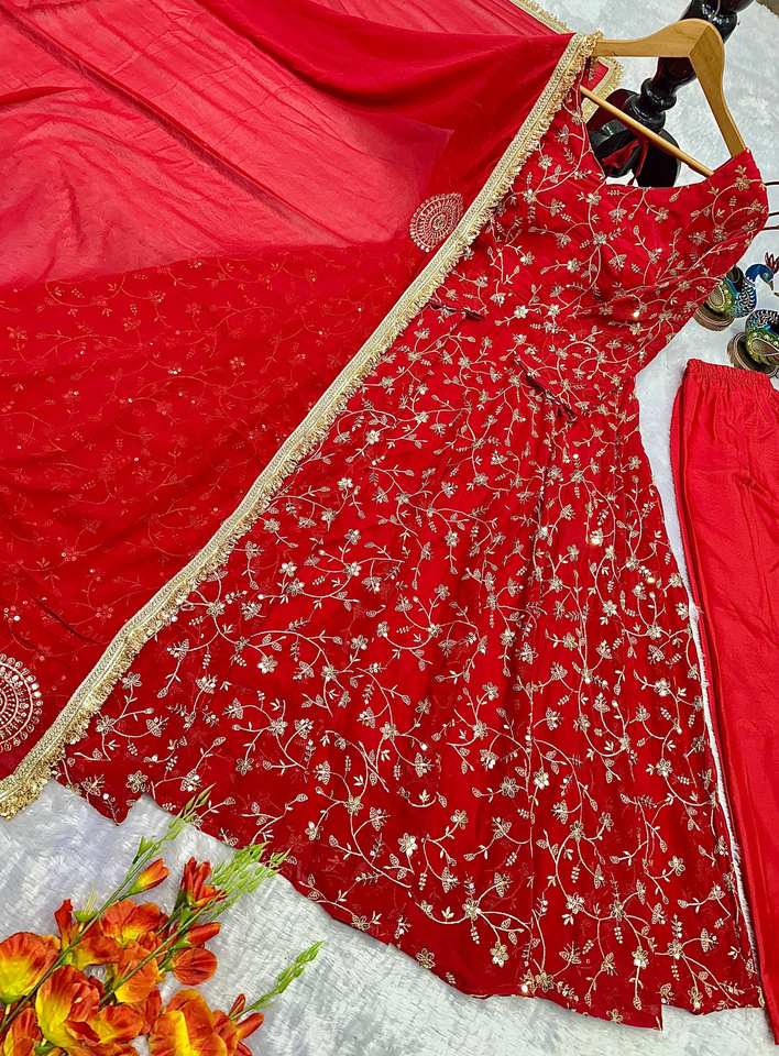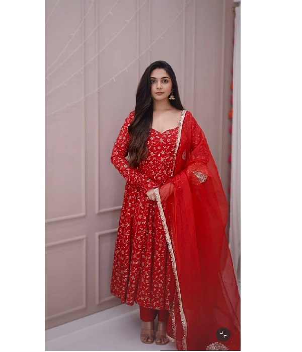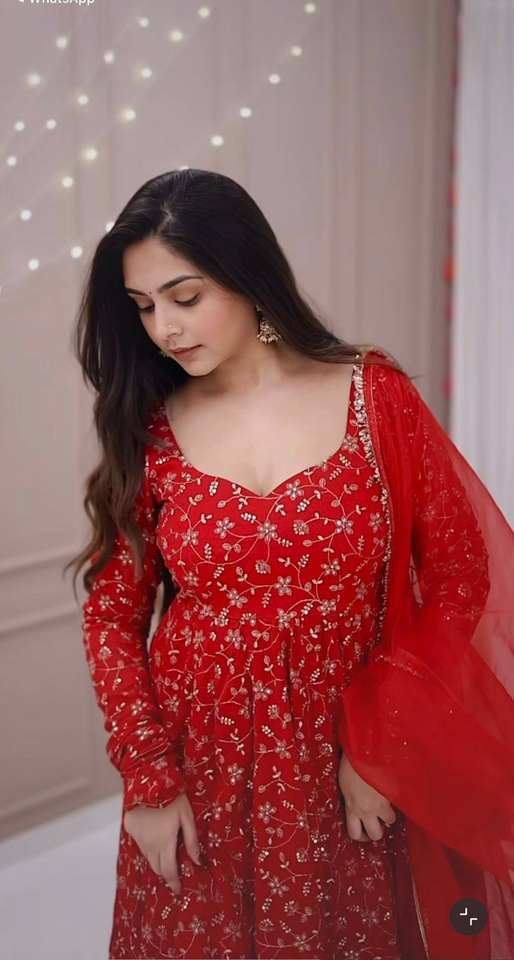 Designer Faux Georgette Gown Kurti Set avec Dupatta pour femmes Tenue ethnique indienne élégante Robe de fête traditionnelle