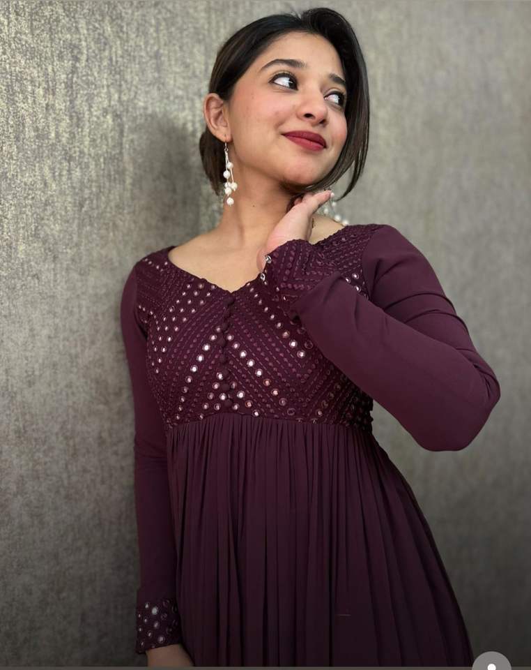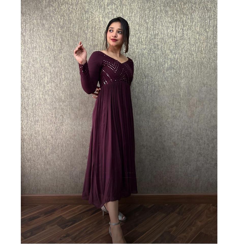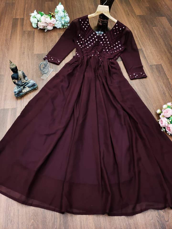 Robe de soirée de créateur, tenue de travail de Type Anarkali, couleur marron, renard Georgette avec doublure complète, broderie miroir