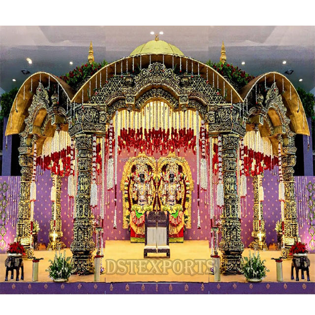 Ensemble chaises de mariage Mandap de designer en fibre de dernière qualité supérieure Mandapam à pilier sculpté Meilleur prix Ensemble de chaises Mandap de mariage en ligne au Royaume-Uni