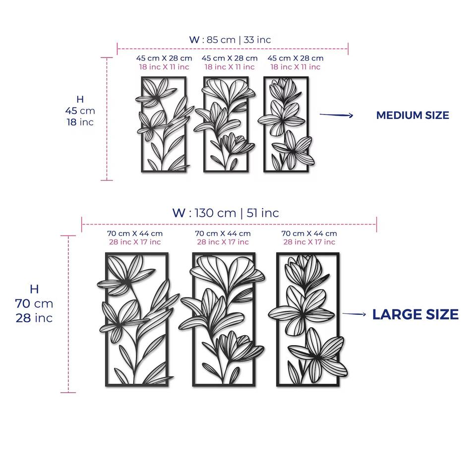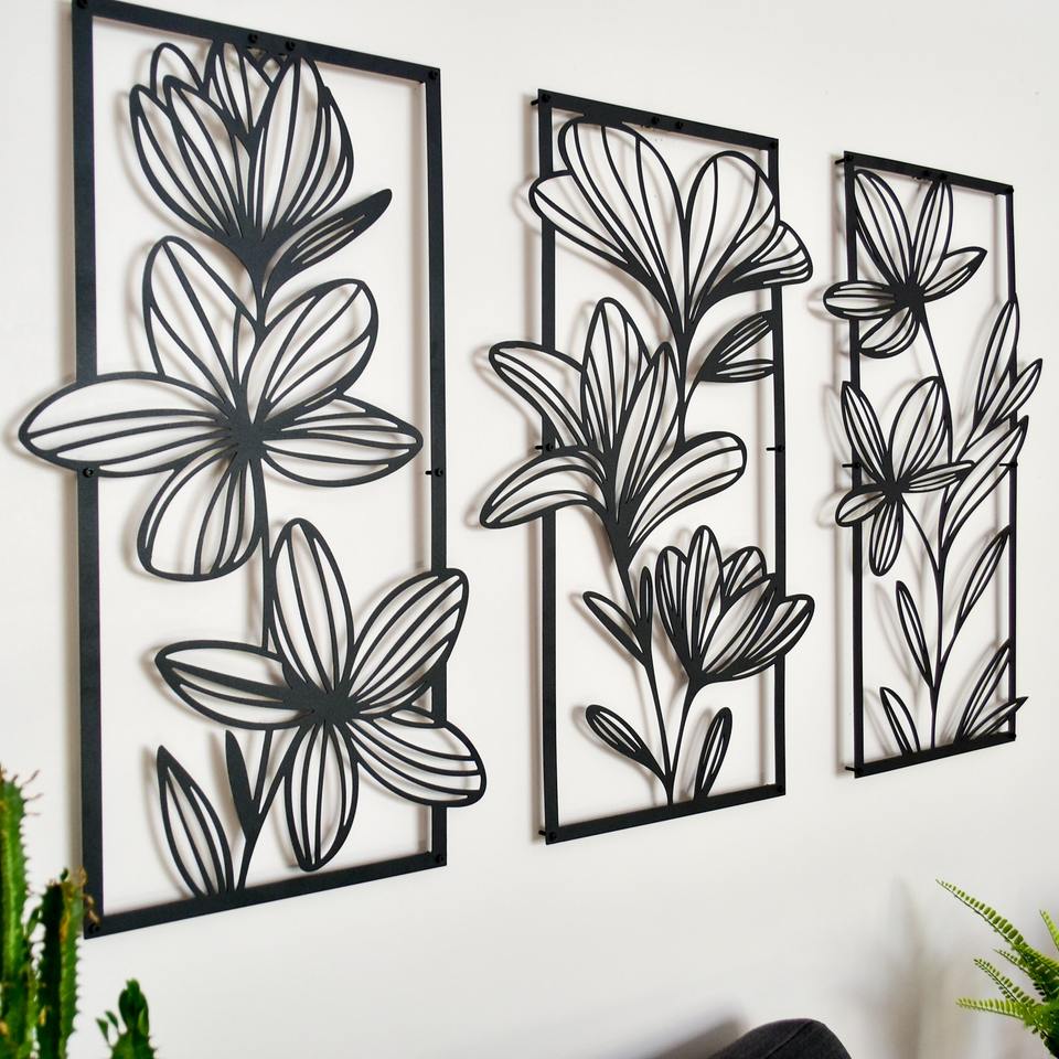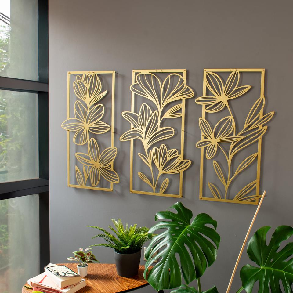 Ensemble de 3 décorations murales en métal doré à motif floral, idéal pour les bureaux, les zones d'accueil, les cadeaux de déménagement et les occasions spéciales.