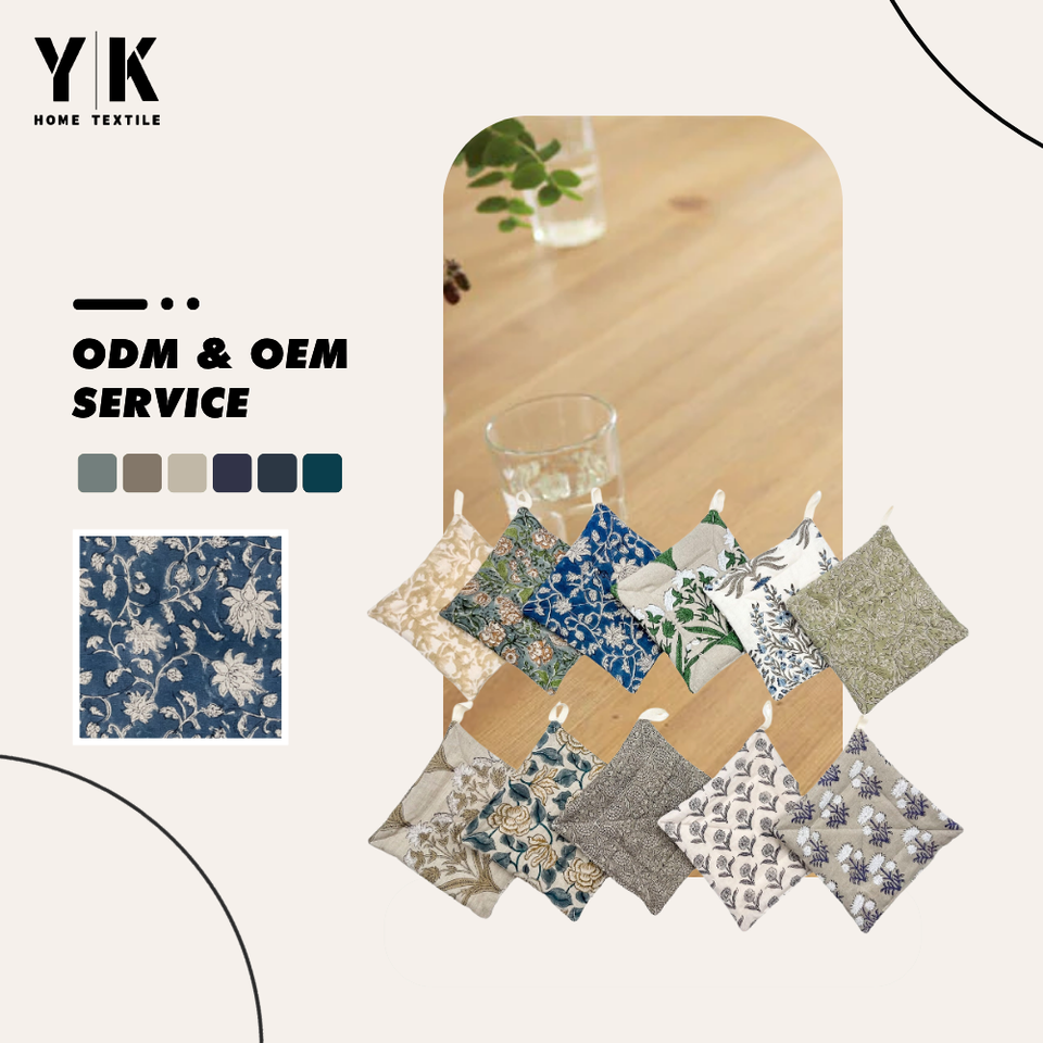 Bloc à main à fleurs de créateur Porte-pot bleu Impression sur polyester/coton Botanique Ferme Rusty Manique Cuisine Cadeau