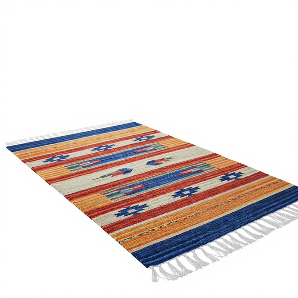 Tapis/chemin de table moderne en coton tissé à la main, motif floral, lavable, avec envers réversible, poils plats, épaisseur personnalisable pour la maison