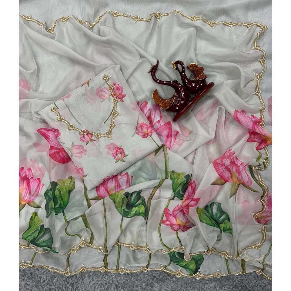 Saree à imprimé floral de créateur pour les fêtes, robes de bal élégantes