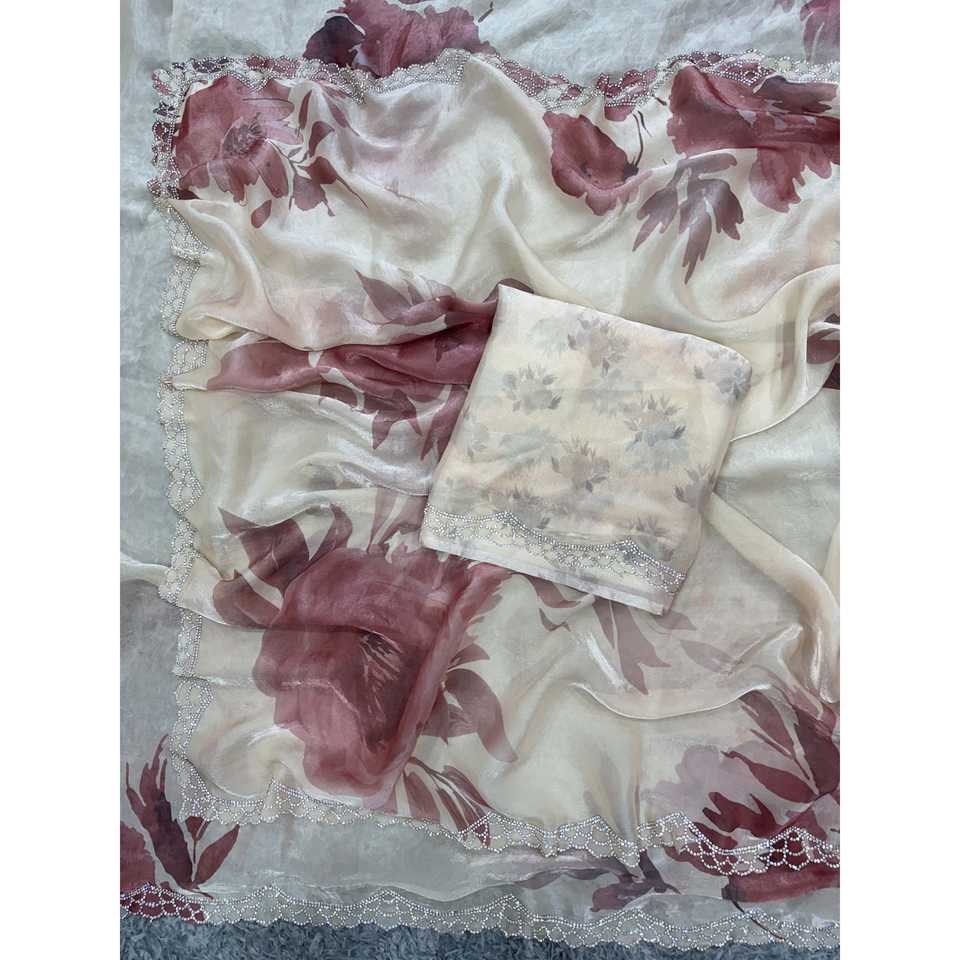 Saree à imprimé floral de créateur avec un beau travail de diamant pour les robes de bal