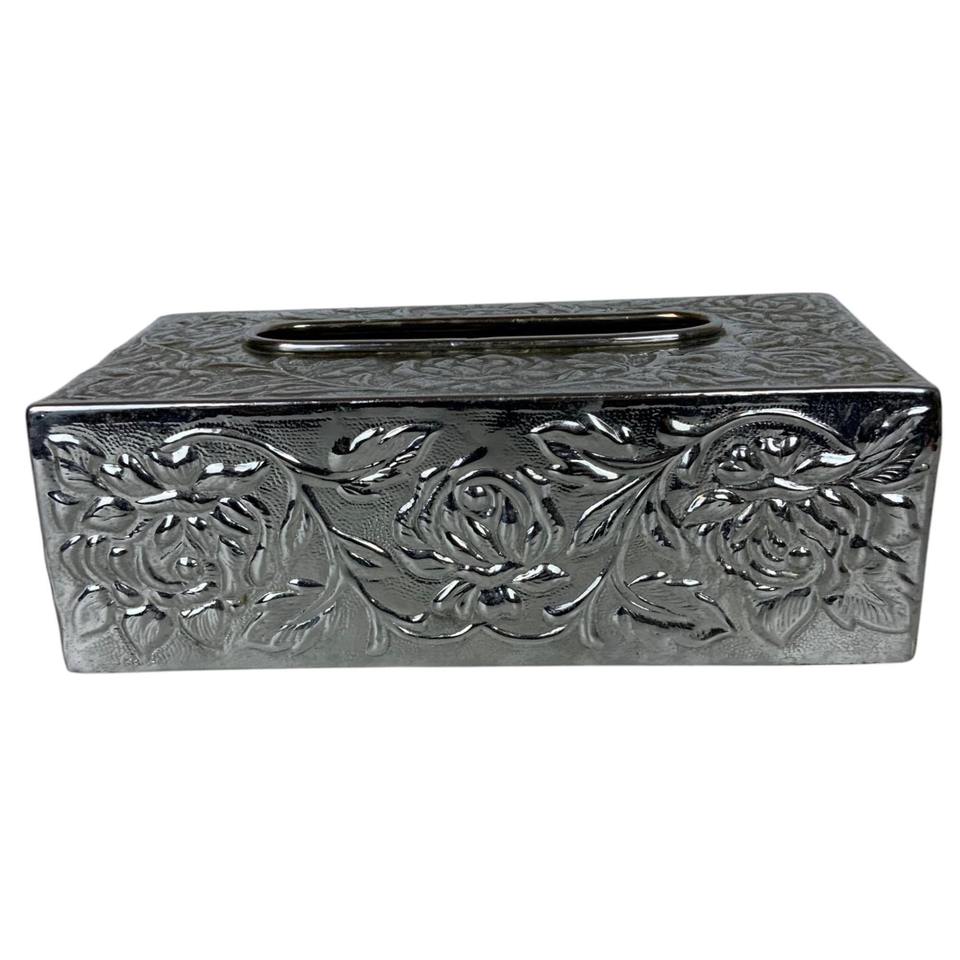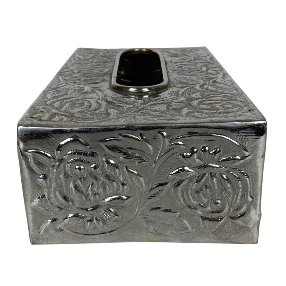 Boîte à mouchoirs en métal argenté à motif floral, idéale pour la cuisine, le salon et la salle à manger, vente en gros depuis l'Inde
