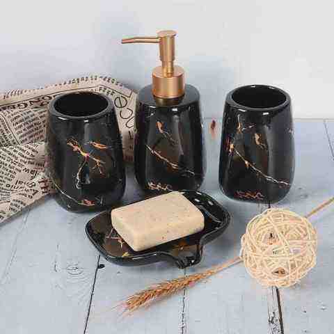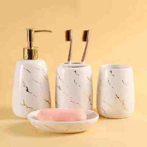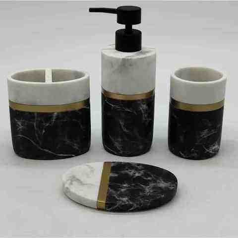 Ensemble de salle de bain en polyrésine de designer, quatre pièces, finition blanche contemporaine, facile à nettoyer, décoration de salle de bain contemporaine