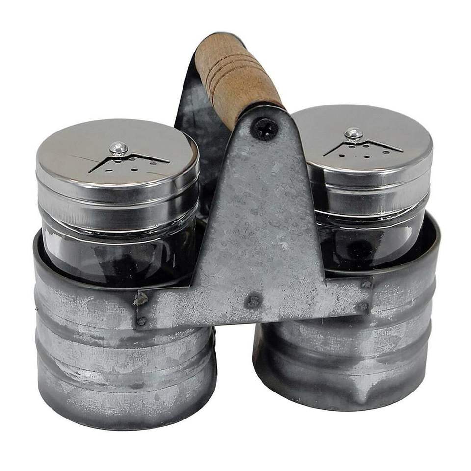 Ensemble de supports pour salière et poivrière galvanisés de designer Ensemble de salière et poivrière de table avec caddie pour restaurants de ferme