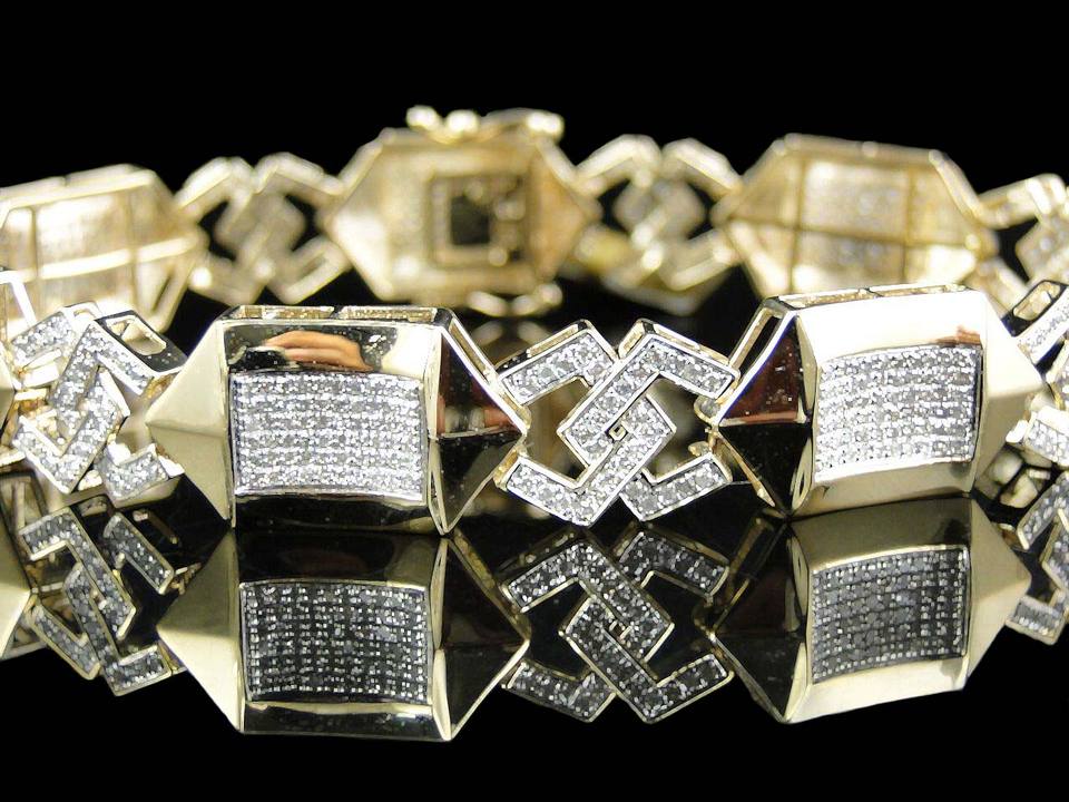 Bracelet à maillons géométriques de créateur en or jaune 10K avec diamants de laboratoire à motif hexagonal, bijoux de luxe pour homme, personnalisable et tendance