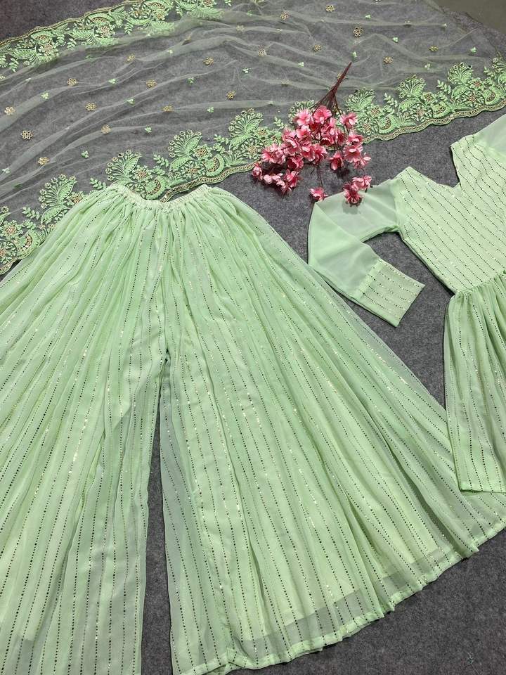 Designer Georgette Material Sharara Suit Short Kameez Beautiful Heavy Boutique Dresses Collection pour les vêtements indiens pakistanais
