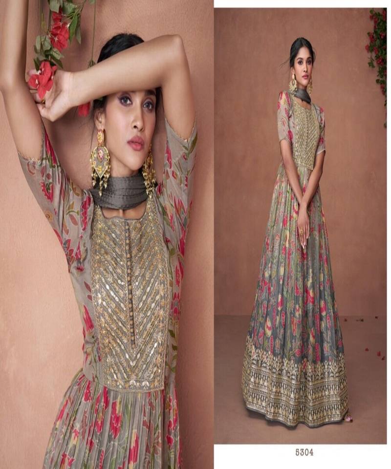 Robe de travail à broder avec fil de codage georgette de créateur dupatta vêtements ethniques de fête prix de gros
