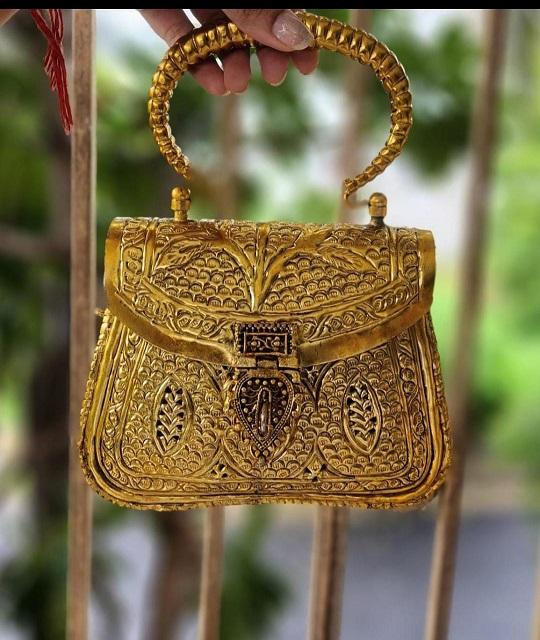 Designer German Silver Plated Women's Clutch Handbag Indian Fashion Party Bag with Cover Closure for Women and Girls by f s i