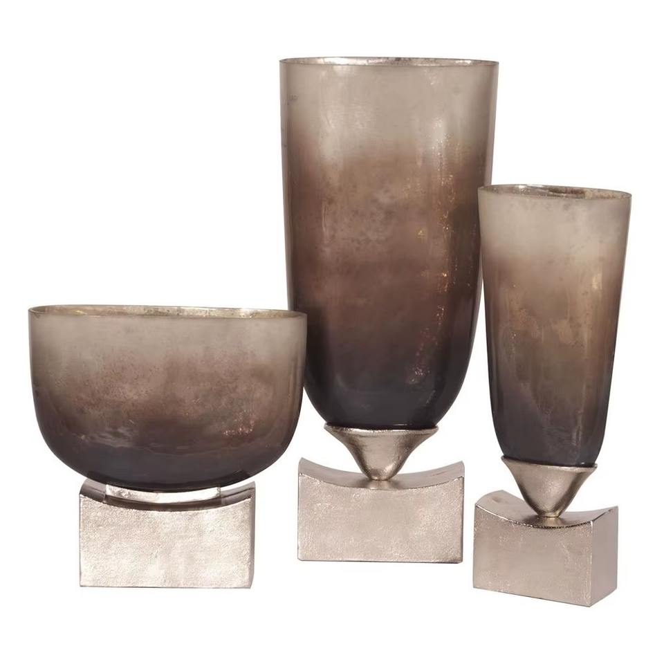 Ensemble de vases en verre et en métal design, parfait pour un style floral minimaliste et une présentation décorative, vente en gros en provenance d'Inde