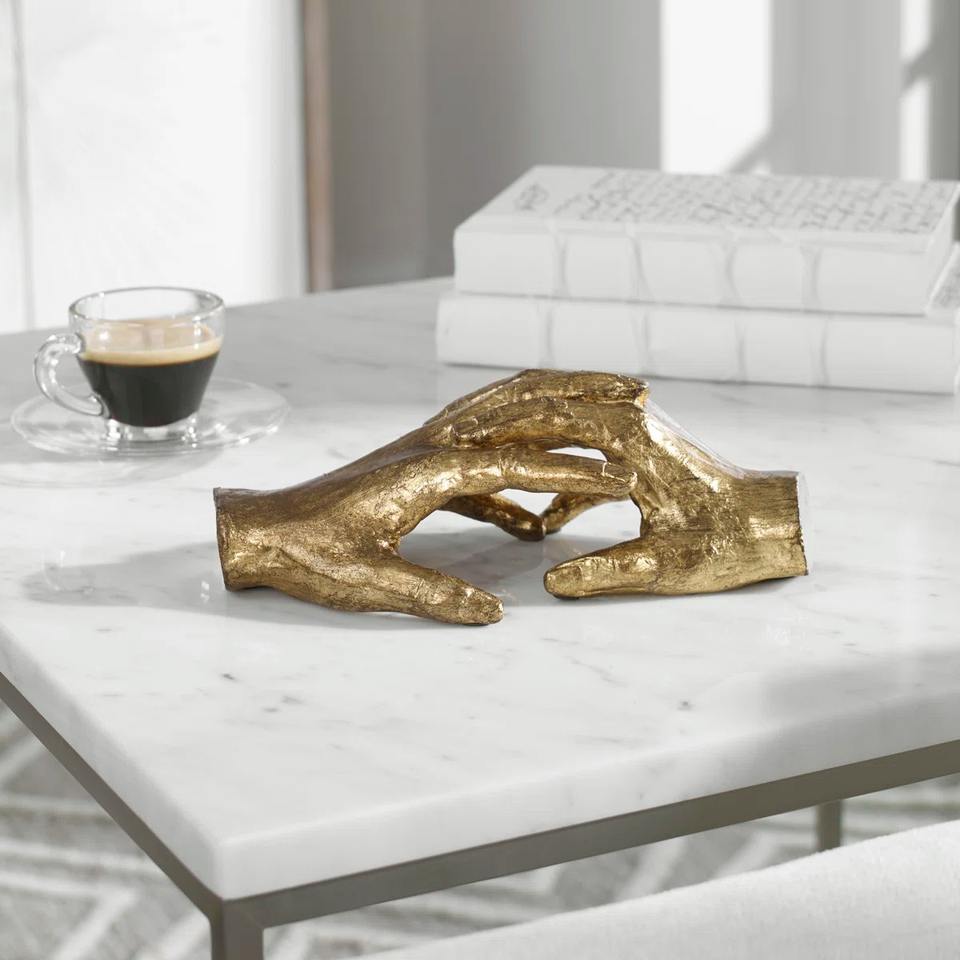 Sculpture en laiton doré de forme de main, objet de table moderne, ajoutant une touche artistique à tout intérieur, vente en gros en provenance d'Inde