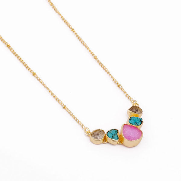 Collier de pierres précieuses Druzy bleu turquoise plaqué or de créateur Chaîne à maillons confortable Perle en forme de cœur Cadeau pour maman en laiton