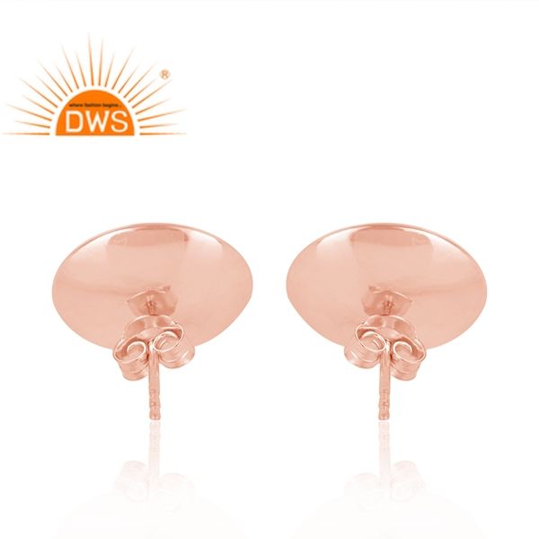 Boucles d'oreilles clous en argent 925 plaqué or rose avec pierres précieuses grises nacrées de forme ronde, fournisseur de bijoux, collection classique