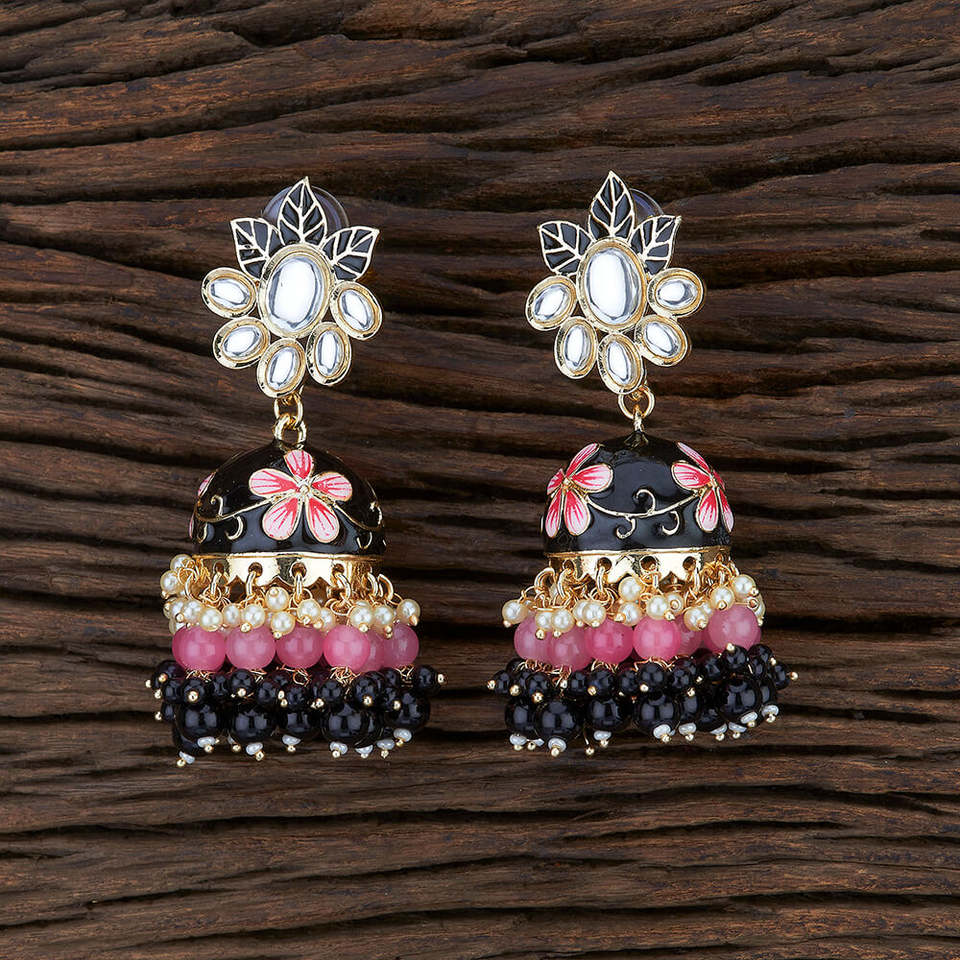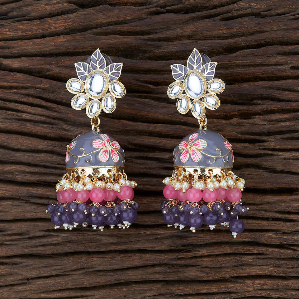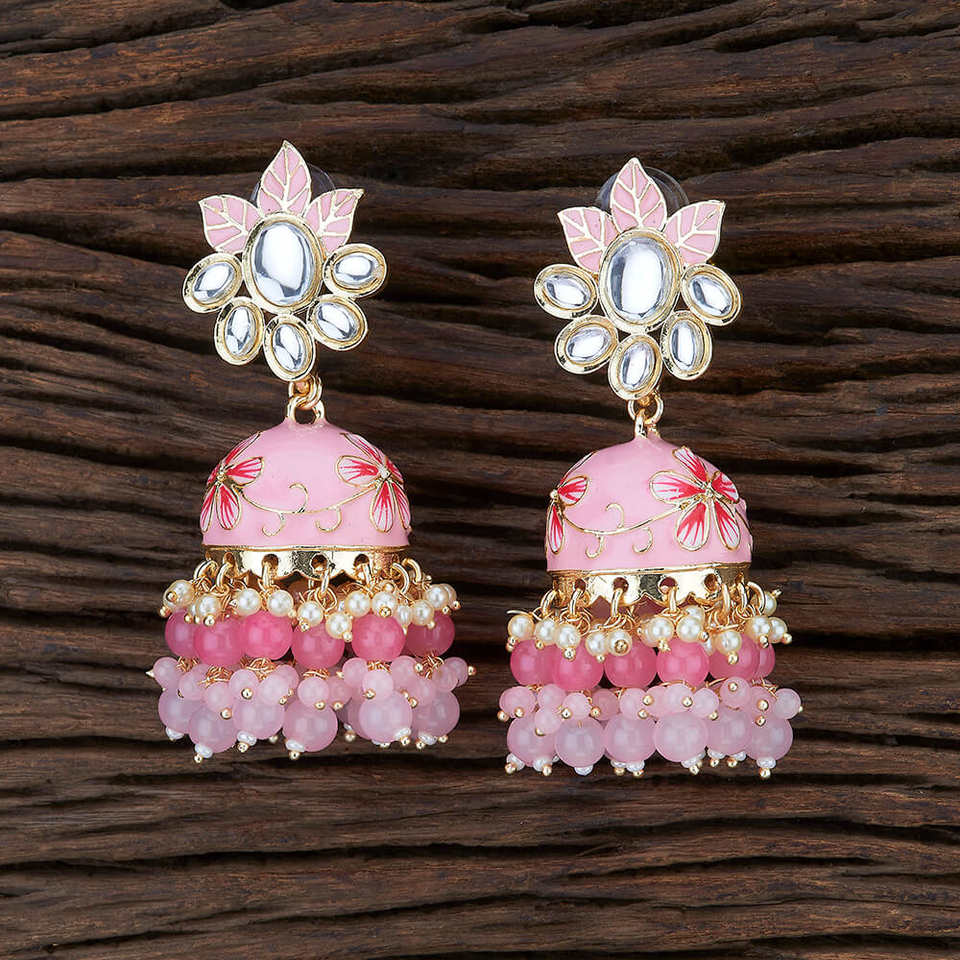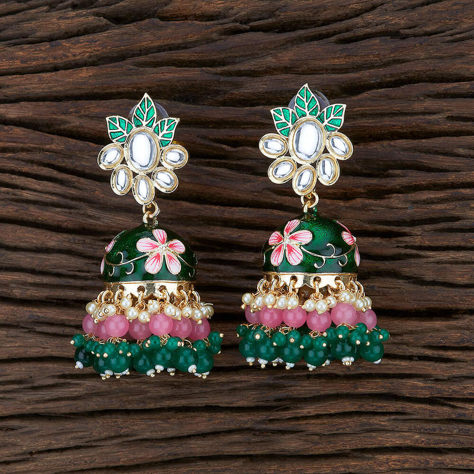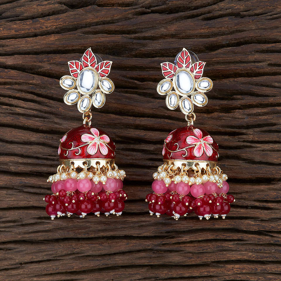 Boucles d'oreilles Indo-Occidentales Meenakari faites à la main par des designers, plaquées or 104808 de Kanhai Jewels au meilleur prix
