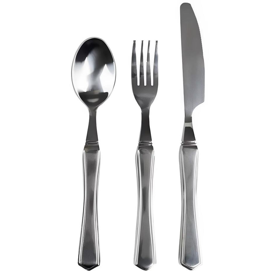 Couverts à poignée design en acier inoxydable plaqué couleur argent Ensemble de 3 fourchettes, cuillères et couteaux Coutellerie pour la maison et les fêtes Passe au lave-vaisselle