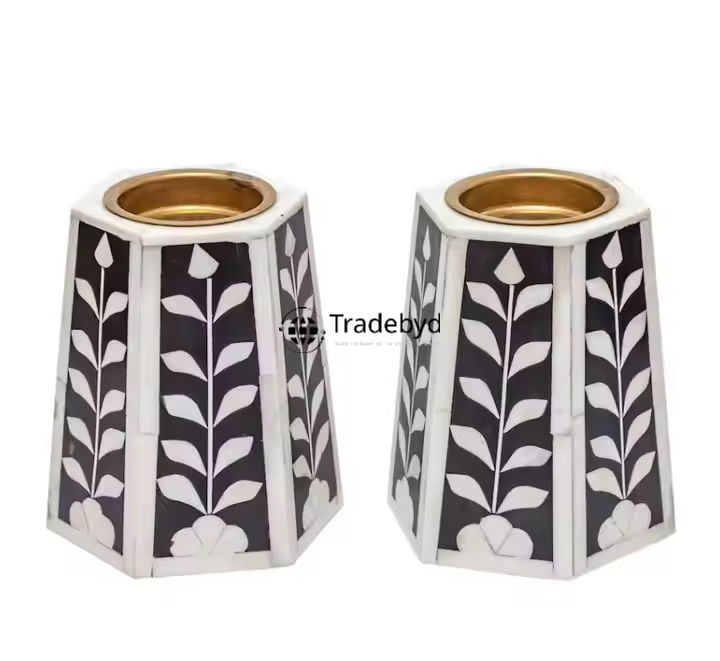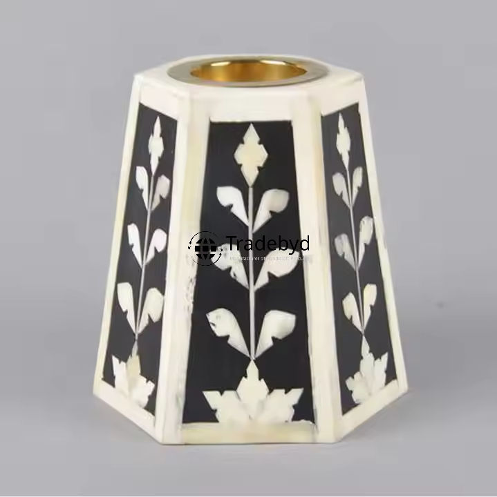 Porte-bougie en os incrusté fait main par des artisans, accessoire décoratif haut de gamme pour la maison par Tradebyd