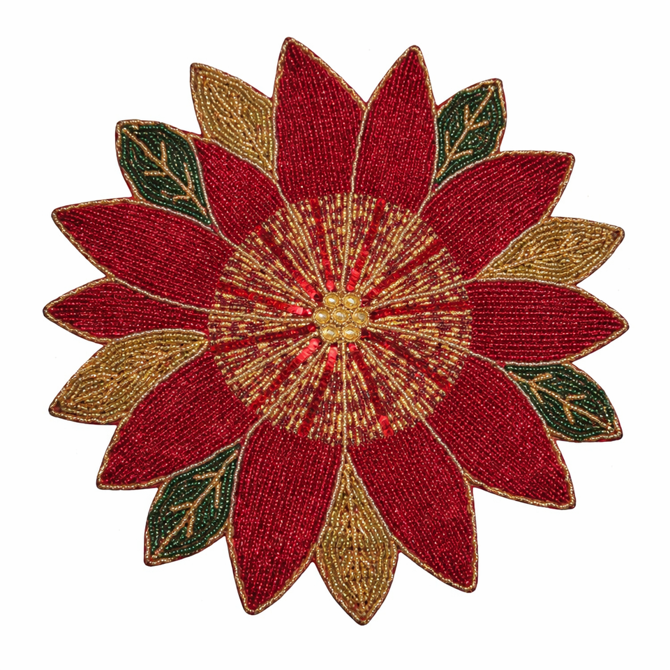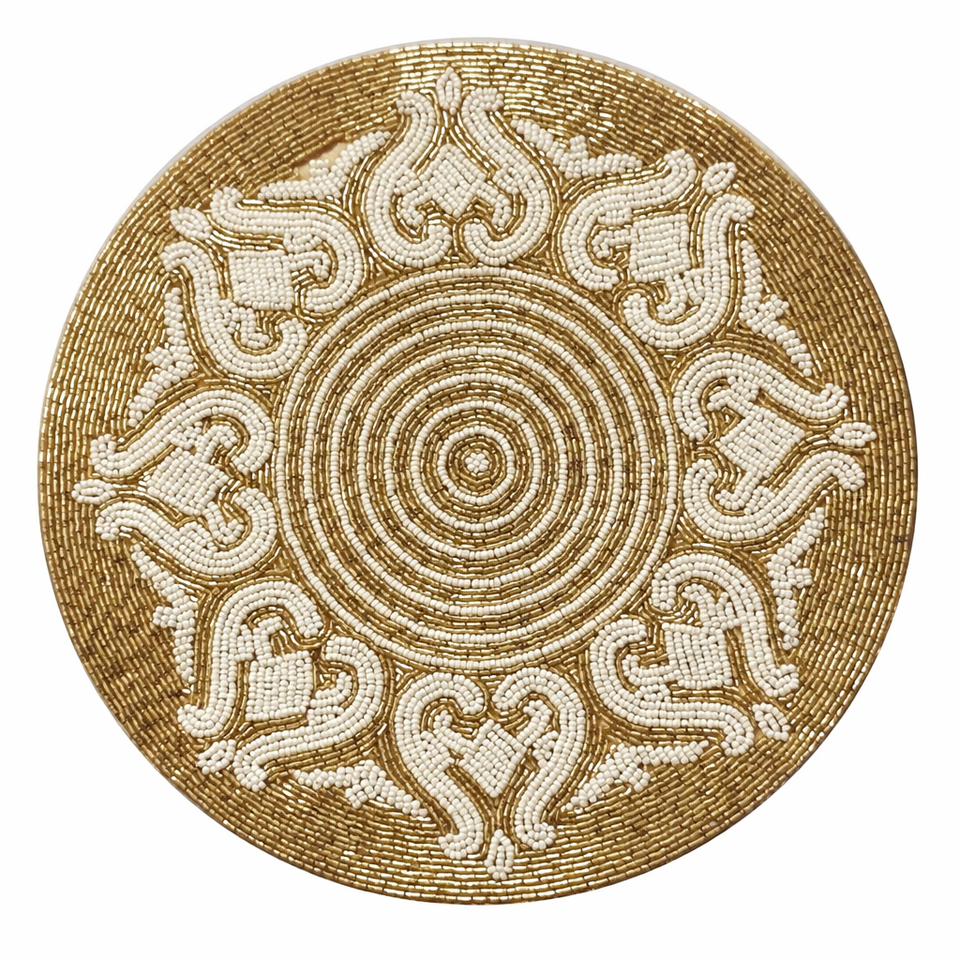 Set de table brodé à la main par des artisans, avec perles de verre et sequins, 5 mm, classique, pour événements festifs, maison, motif floral, café, repas